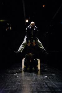 Dylan Myers displays an expansive physicality as the frog who summons the banker, Katagiri, on his heroic mission. (If you’ve ever wondered what those thin-soled rubber athletic shoes with individual toes are for, the answer is: amphibian wear.) Maboud Ebrahimzadeh is double-cast as Katagiri and the pal who steals away Junpei’s love. You pity his characters differently. The same prop—a black-lace curtain, basically—convincingly evokes the worm the frog must fight and later, a terrifying hallucination of an insect invasion of Katagiri’s wounded body. It’s strong, stirring stuff—a modern fable with an oblique moral. It enchants us like a dream and kicks like a nightmare.” – Washington City Paper