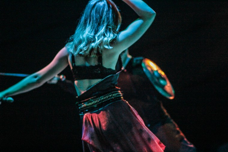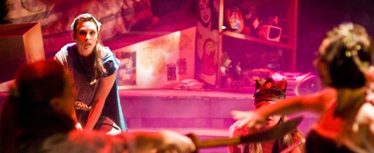 “She Kills Monsters is bad ass. Fight Choreographer Casey Kaleba mounts some truly exhilarating brawls, featuring spears, axes, and even a curious gelatinous cube. Like kids with no adult supervision, the dozen cast members leap joyfully between the angular platforms that make up Ethan Sinnott’s excitingly dynamic set. Together with a clever and provoking lighting design by Brian S. Allard, She Kills Monsters lends itself to a lot of testosterone-flavored cheering. But don’t be fooled by the demons, elves, and references to 90′s cult TV series. This is a play about real people who confront real tragedy. Director Randy Baker displays superb agility in his ability to hop from deadly earnestness to D&D mayhem in a flash. Baker sacrifices neither substance nor spectacle as he tells us a story about, well, people who tell stories.”
